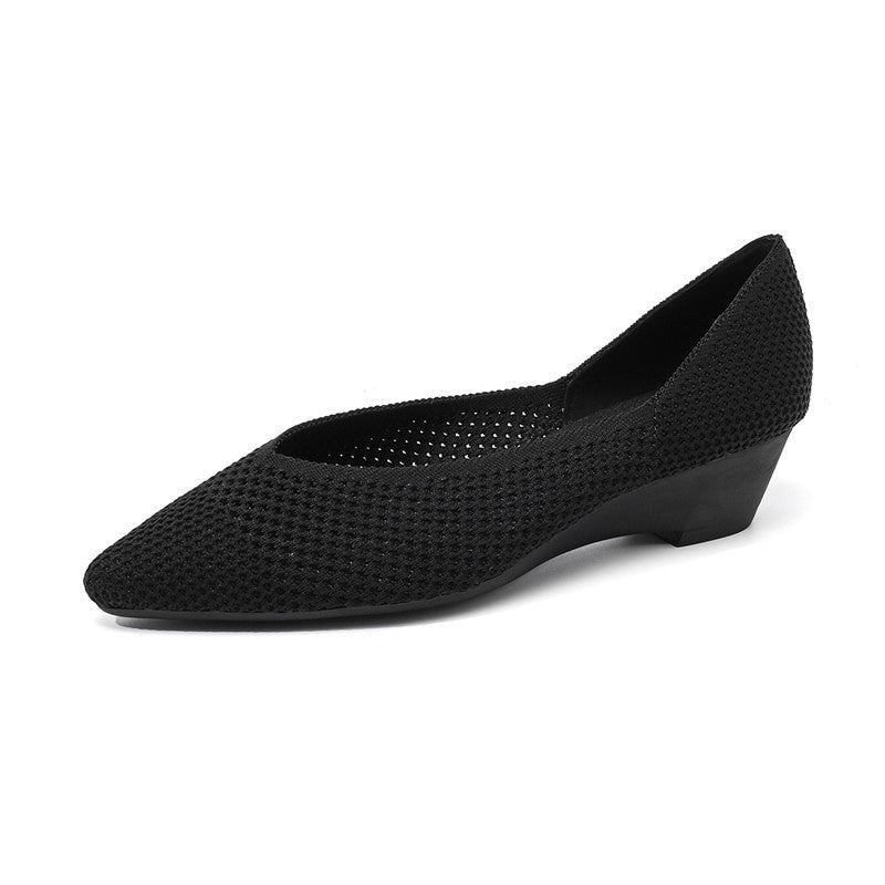 Sapato Salto Baixo Cunha Confortável em Malha Tricô - Loretta
