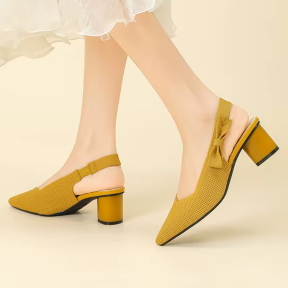 Slingback Salto Bloco em Malha Tricô Confortável – Valenne