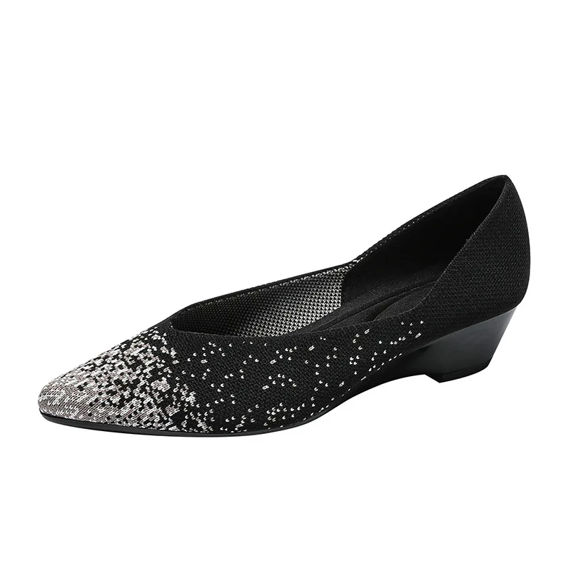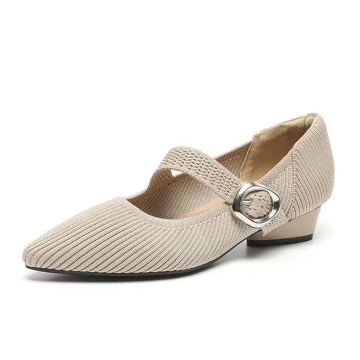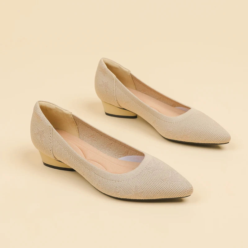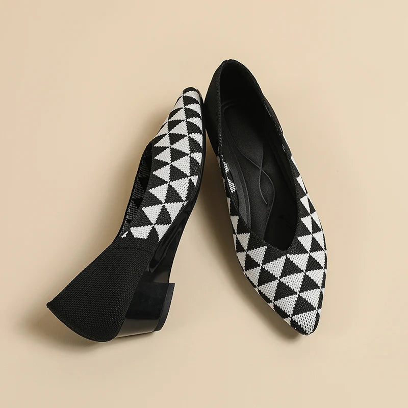 Sapato Salto Baixo Confortável em Malha Tricô - Aveline