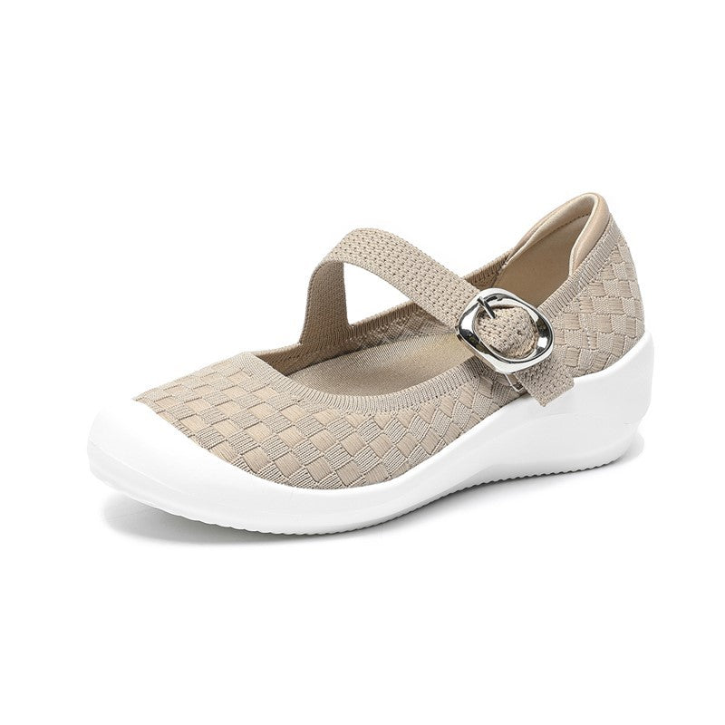 Sapato Salto Anabela Confortável em Malha Tricô - Elodie