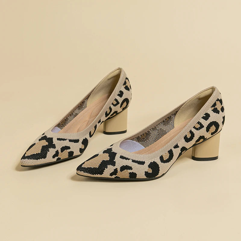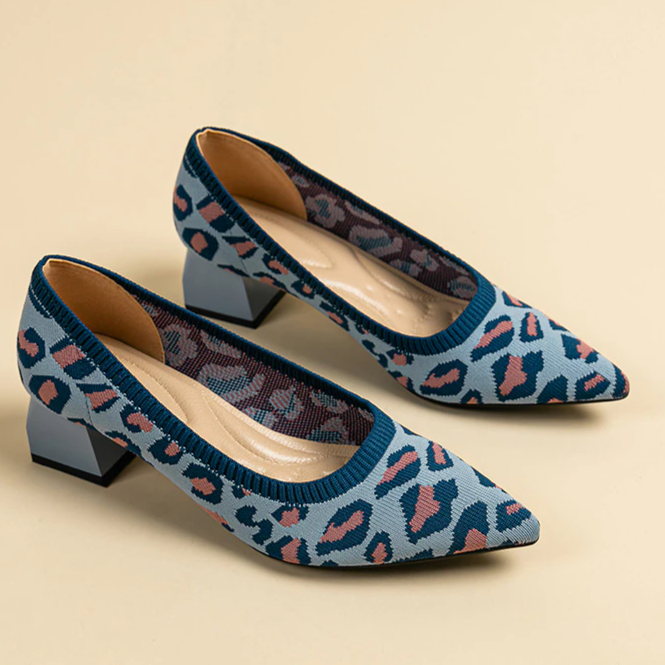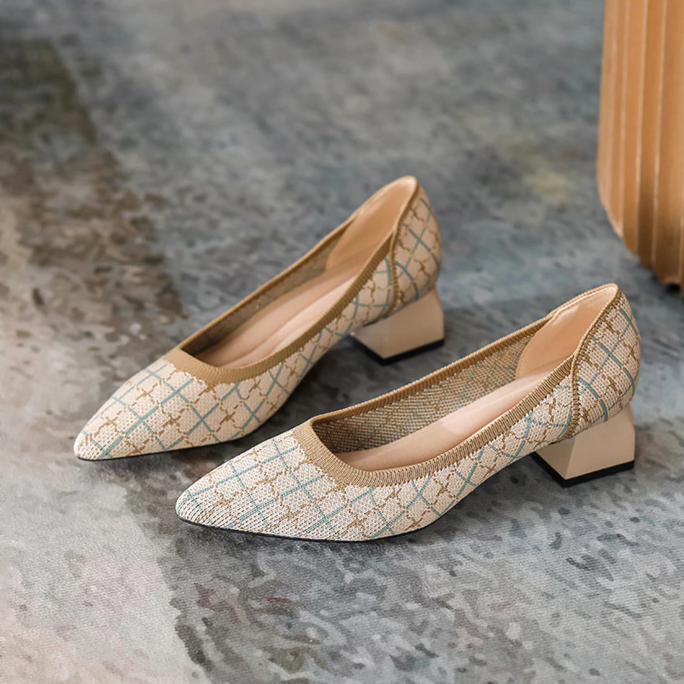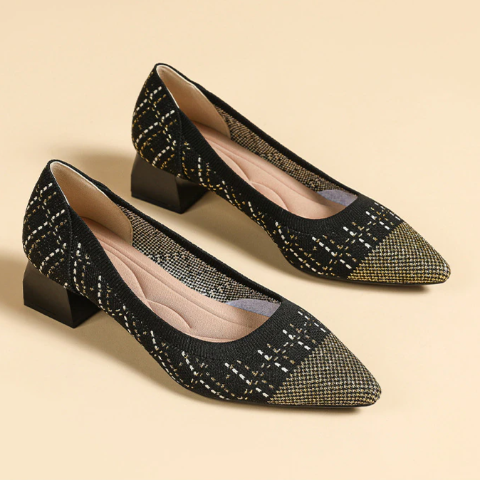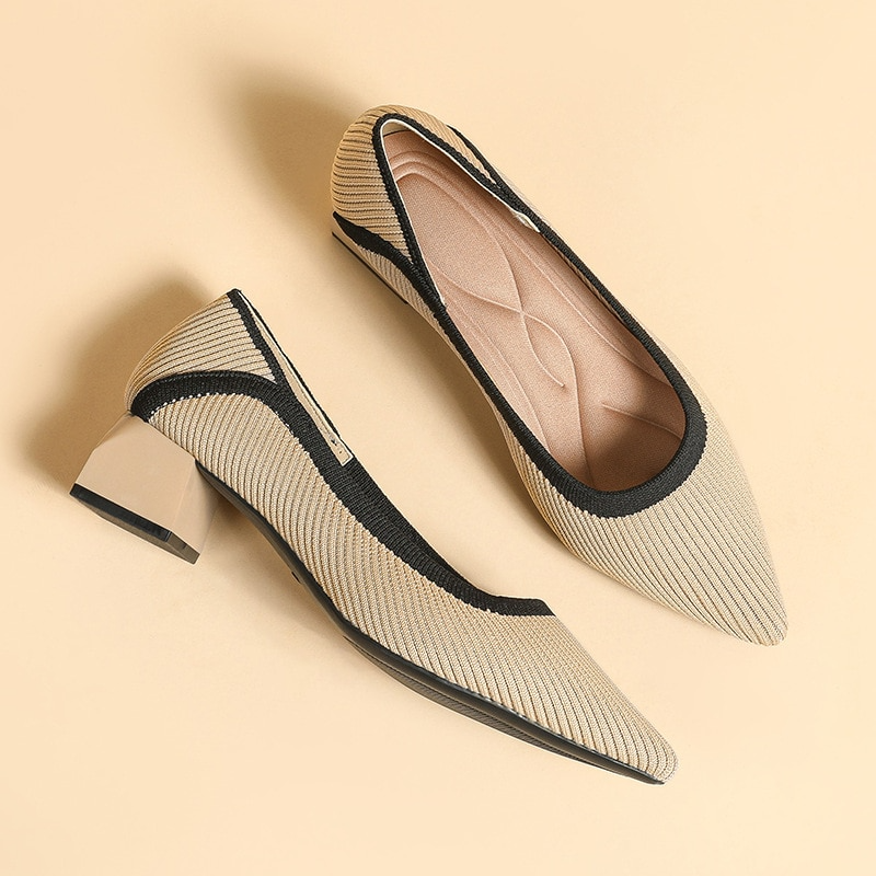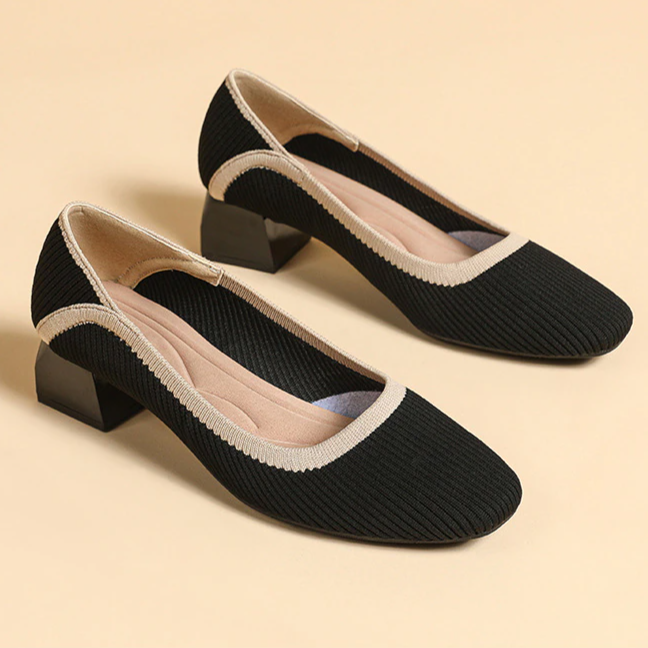 Scarpin Salto Bloco Confortável em Malha Tricô - Emma