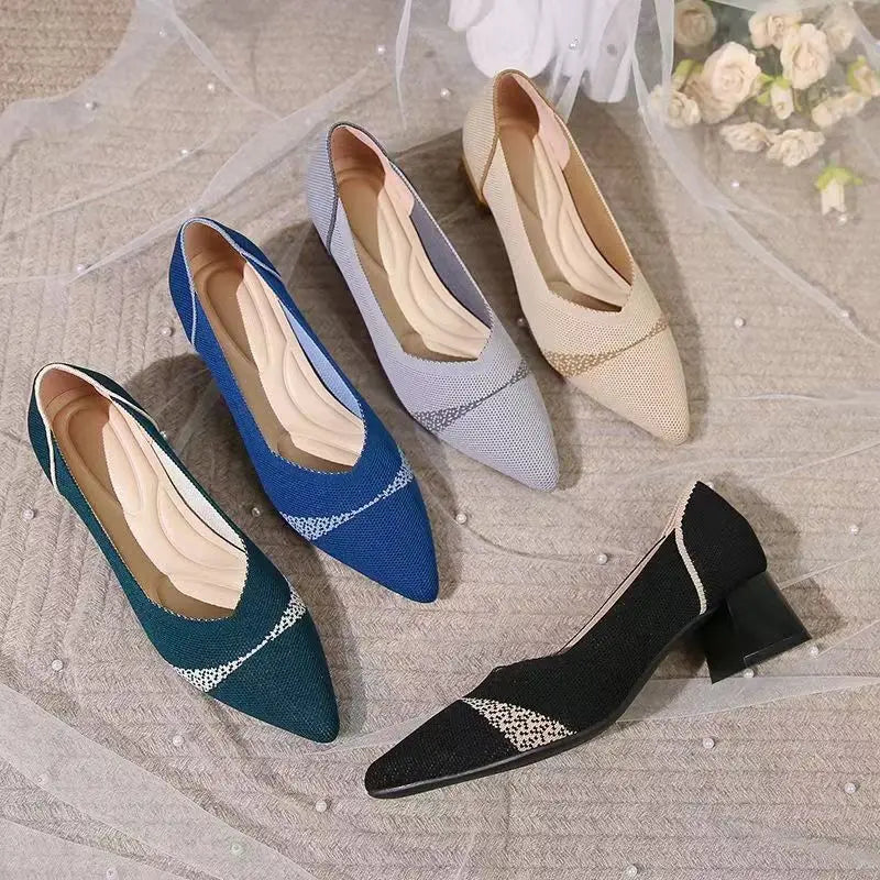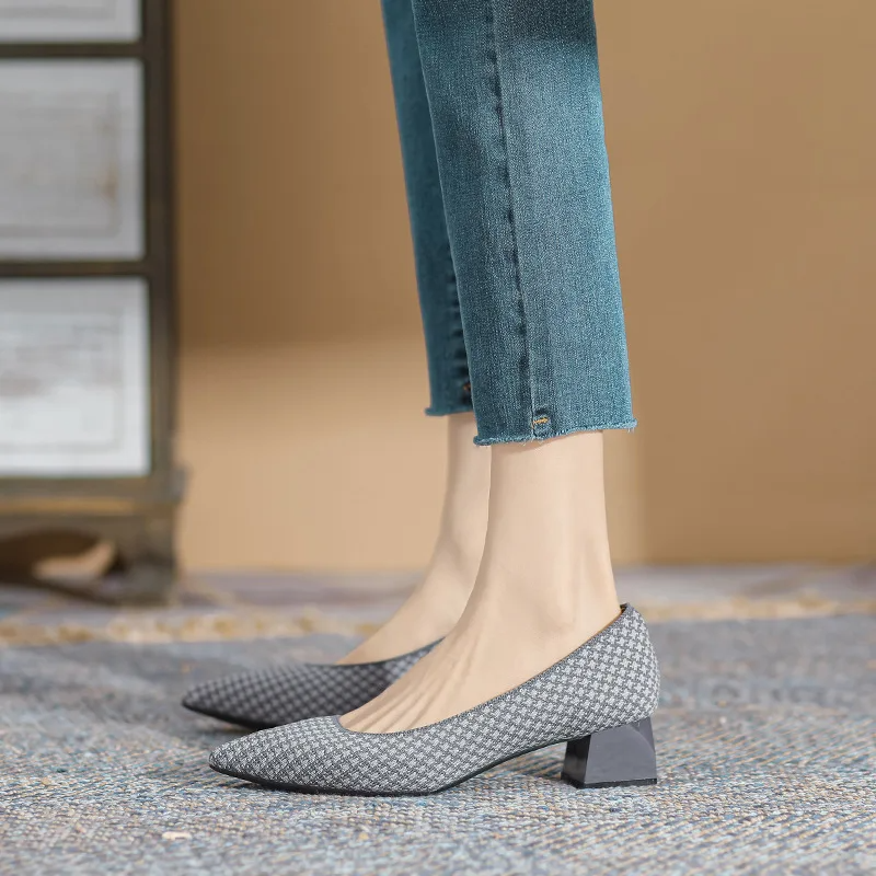 Scarpin Salto Bloco Confortável em Malha Tricô - Danika