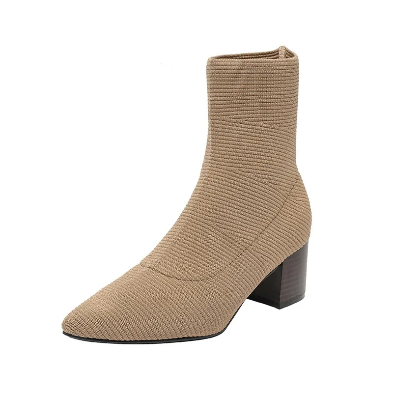 Slingback Salto Bloco Malha Tricô Confortável - Angelita
