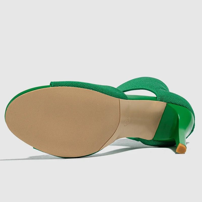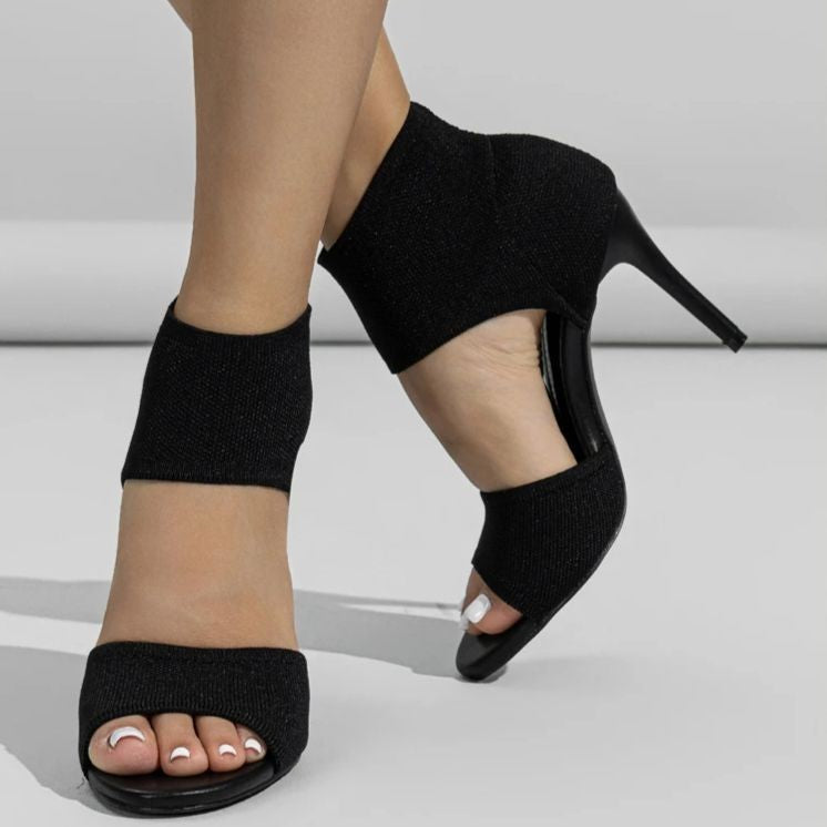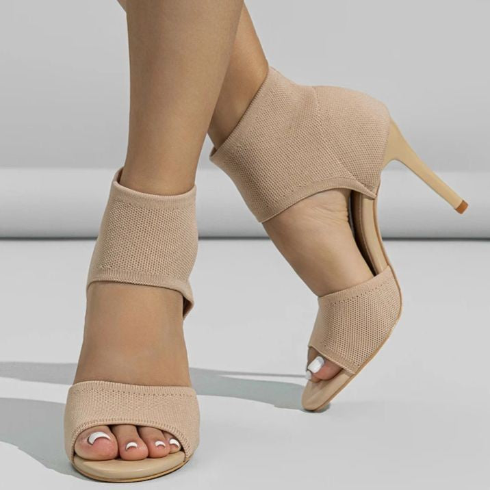Sandália Peep Toe em Malha Tricô com Salto Fino - Isolde