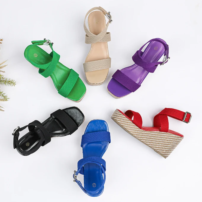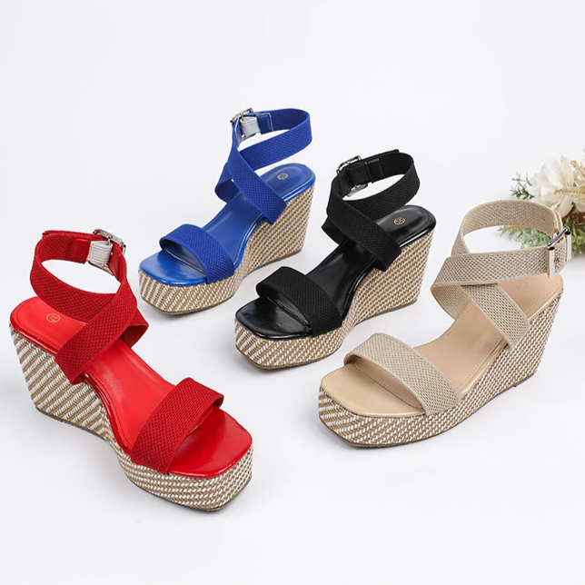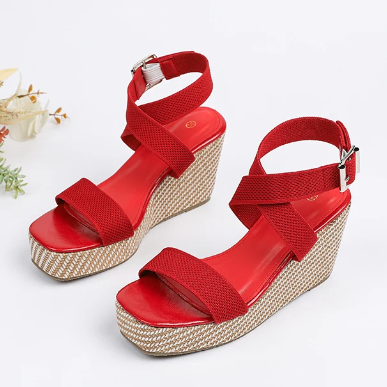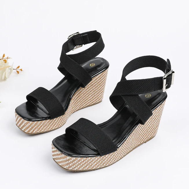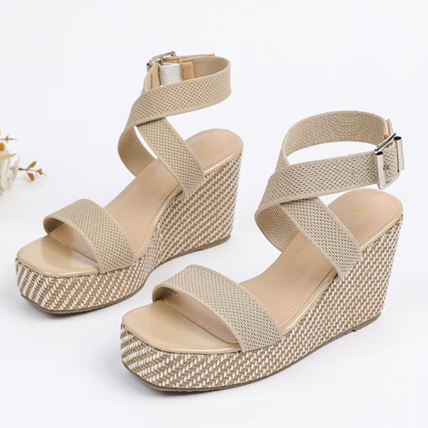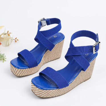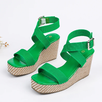 Sandália Salto Anabela Malha Tricô Confortável - Amaya