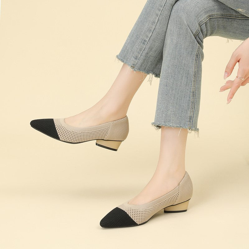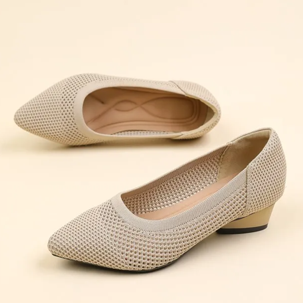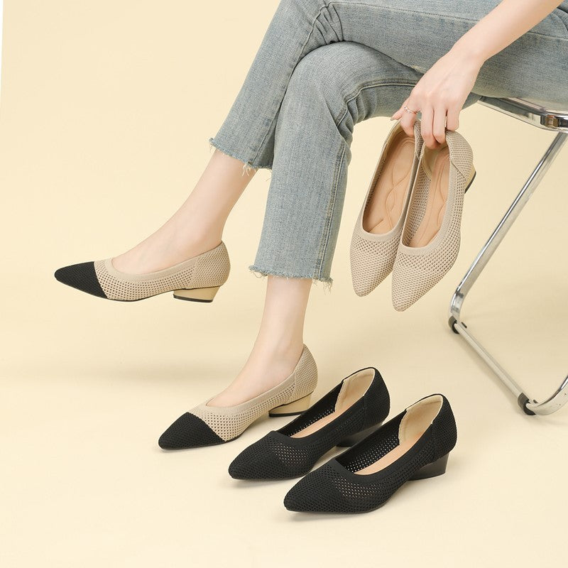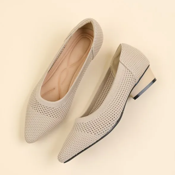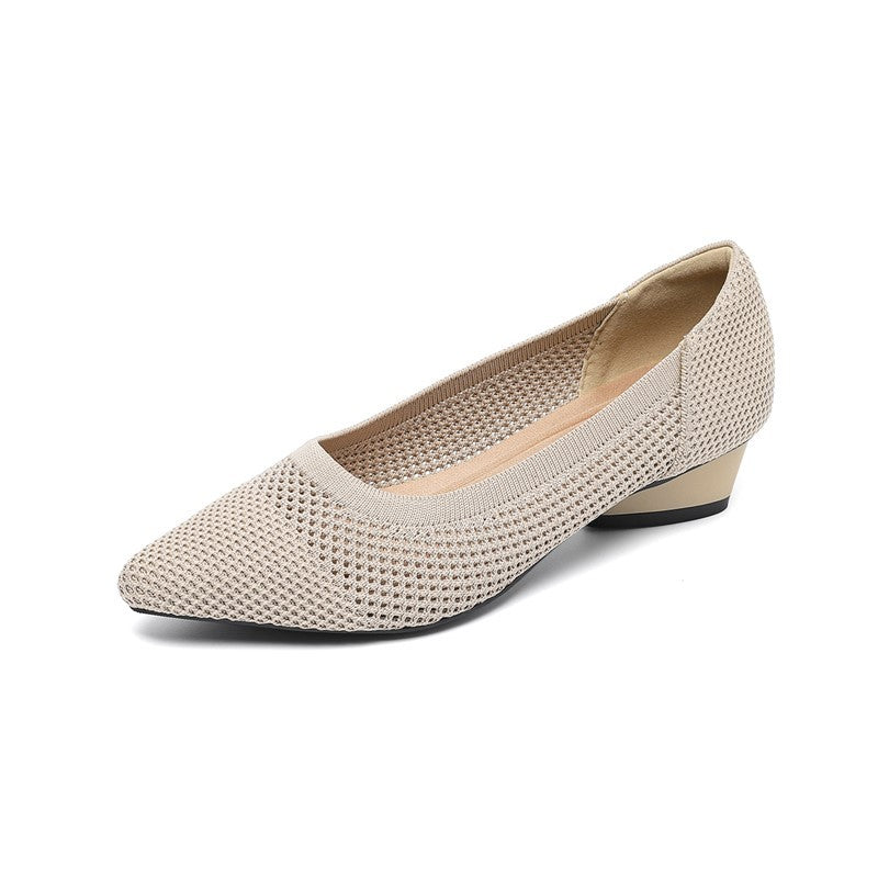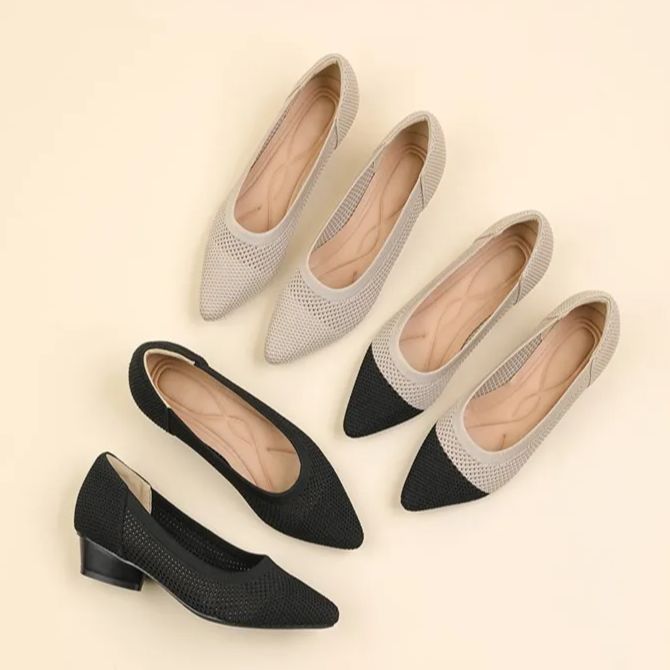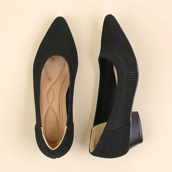 Sapato Salto Baixo Confortável em Malha Tricô - Nolia