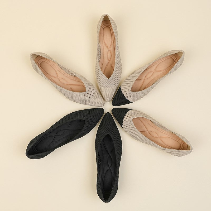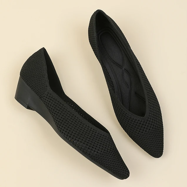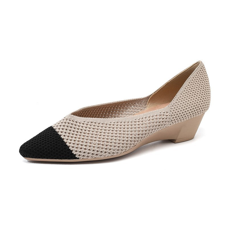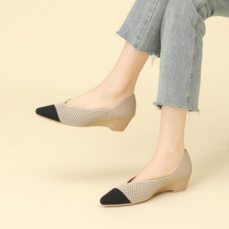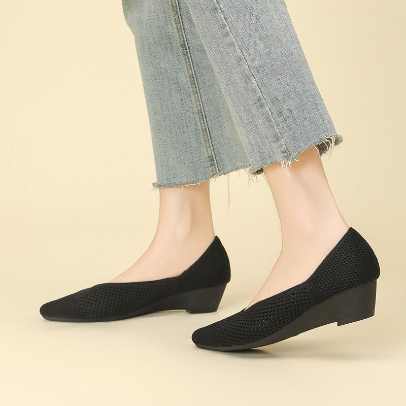 Sapato Salto Baixo Cunha Confortável em Malha Tricô - Loretta