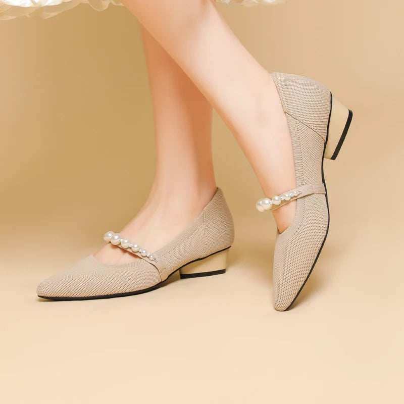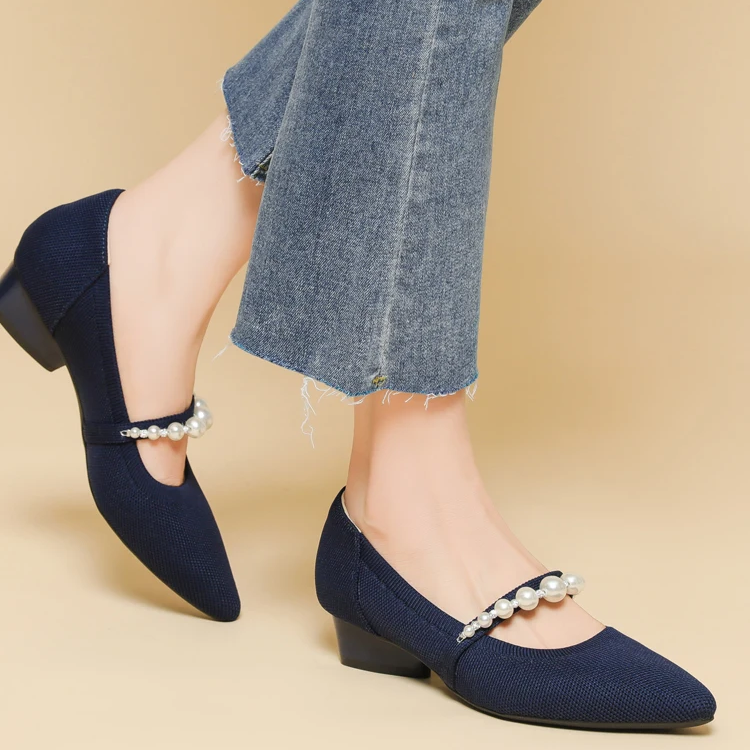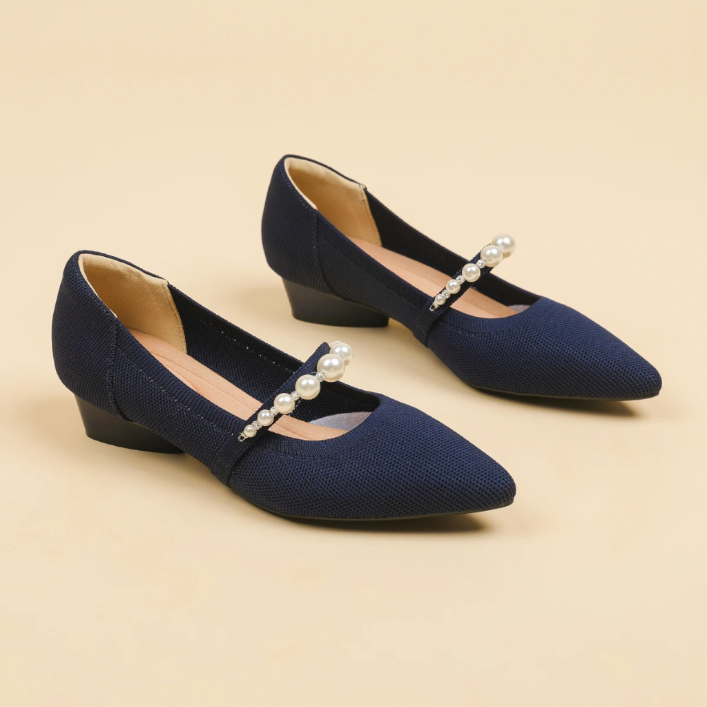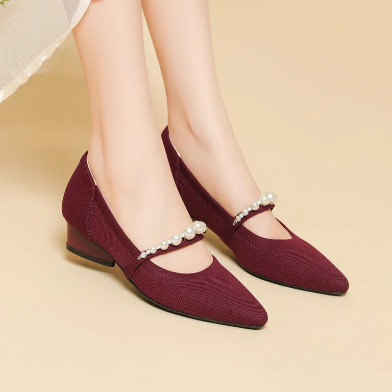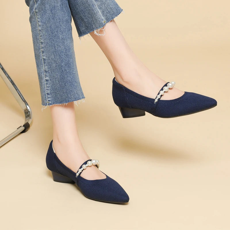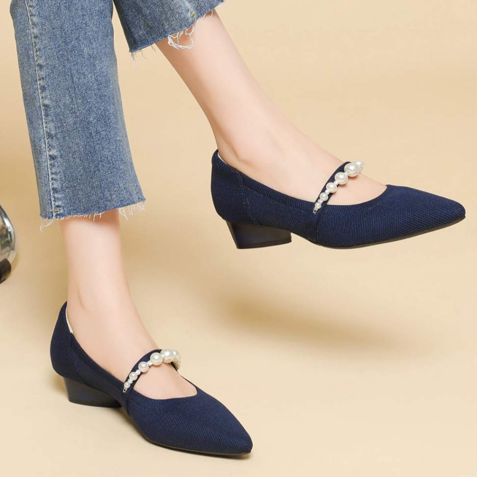 Sapato Salto Bloco Confortável em Malha Tricô - Jane
