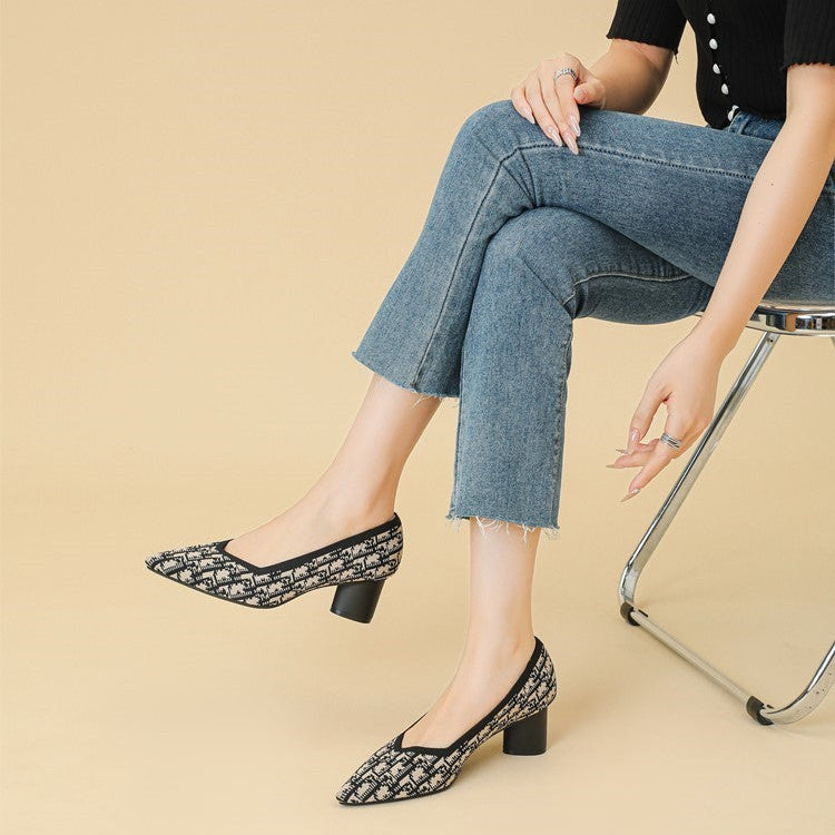 Scarpin Salto Bloco Confortável em Malha Tricô - Danika
