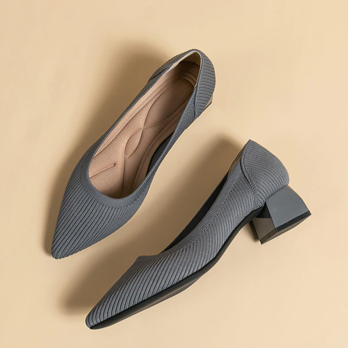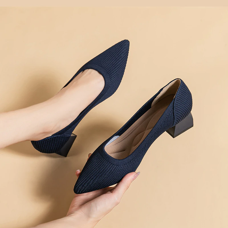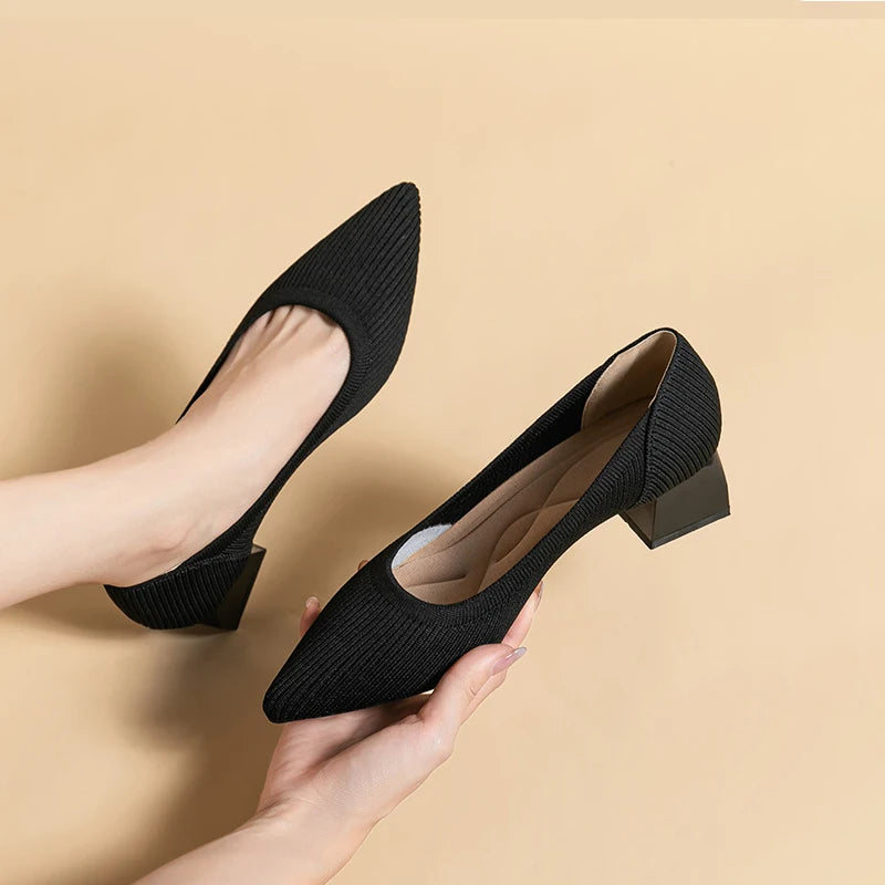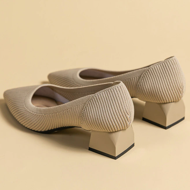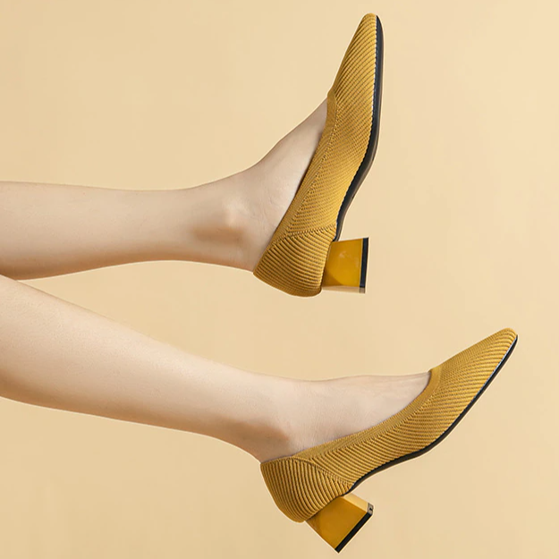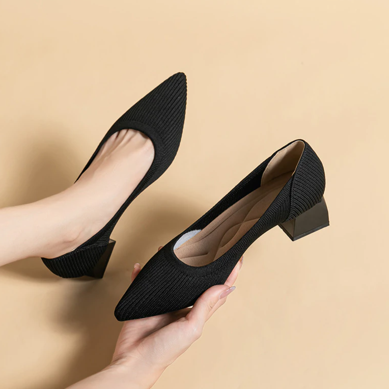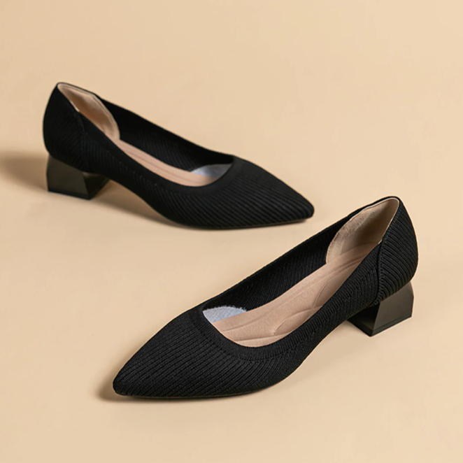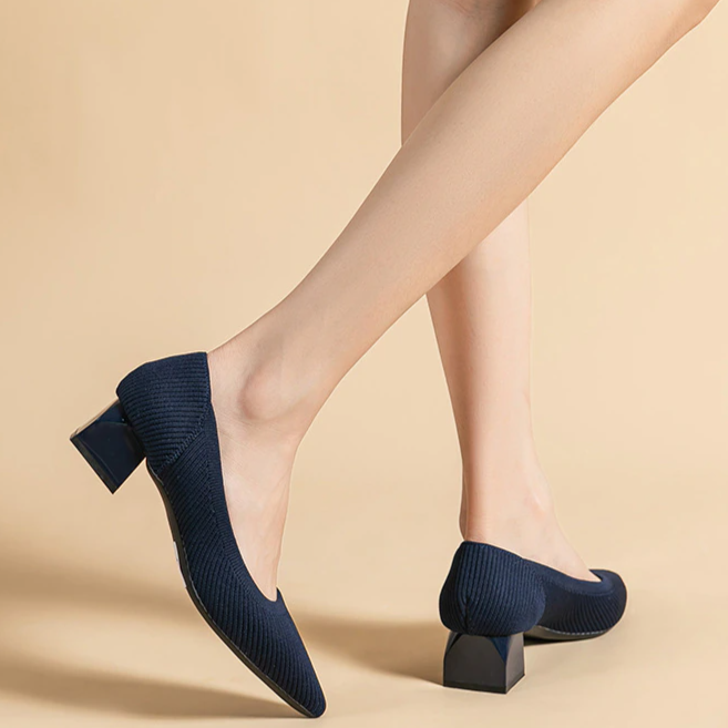 Scarpin Salto Bloco Confortável em Malha Tricô - Agnes