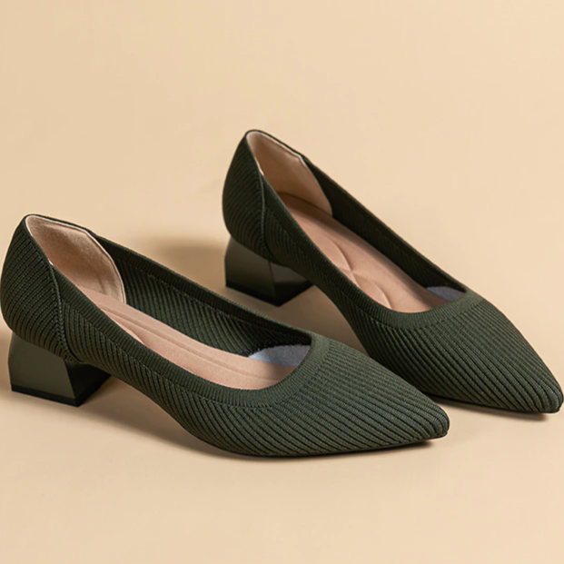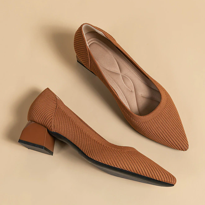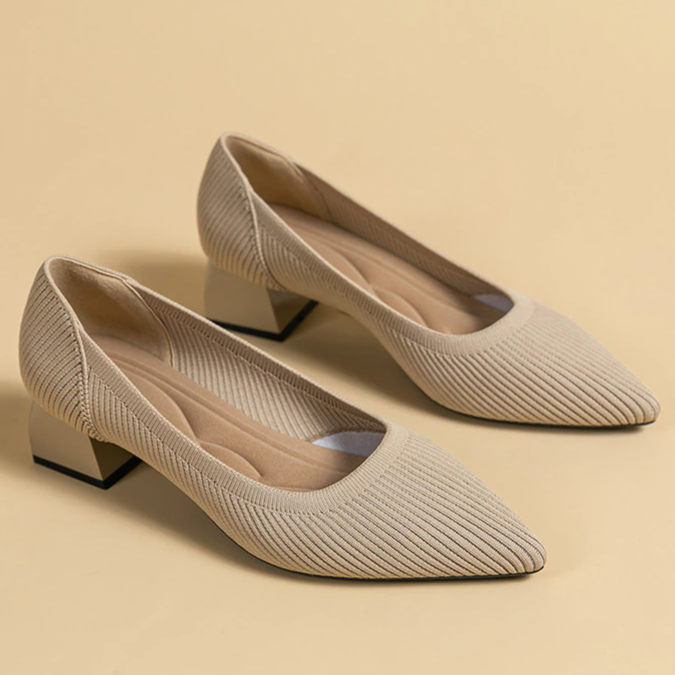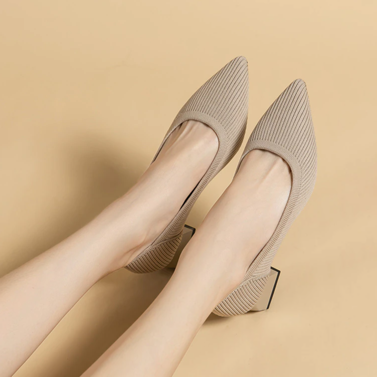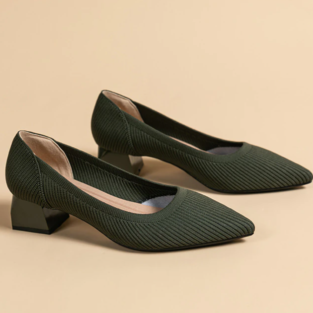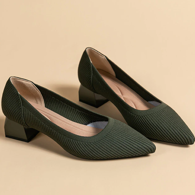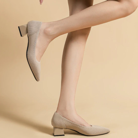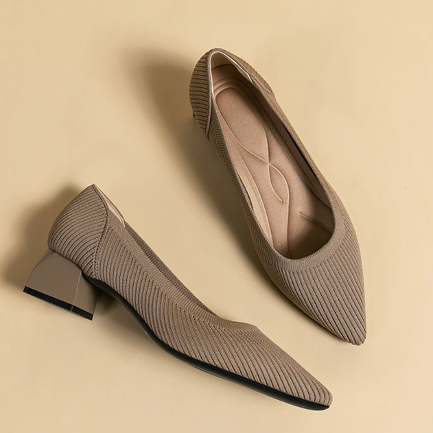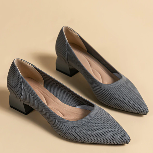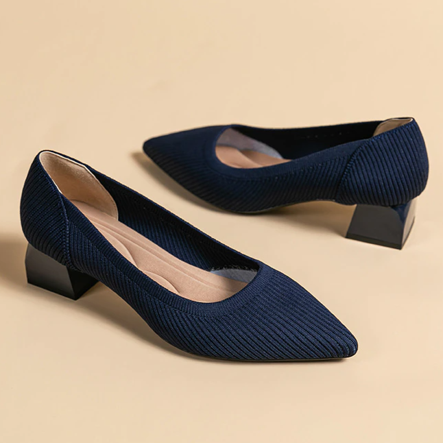 Scarpin Salto Bloco Confortável em Malha Tricô - Agnes