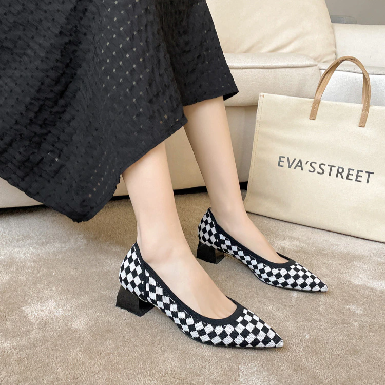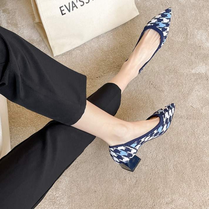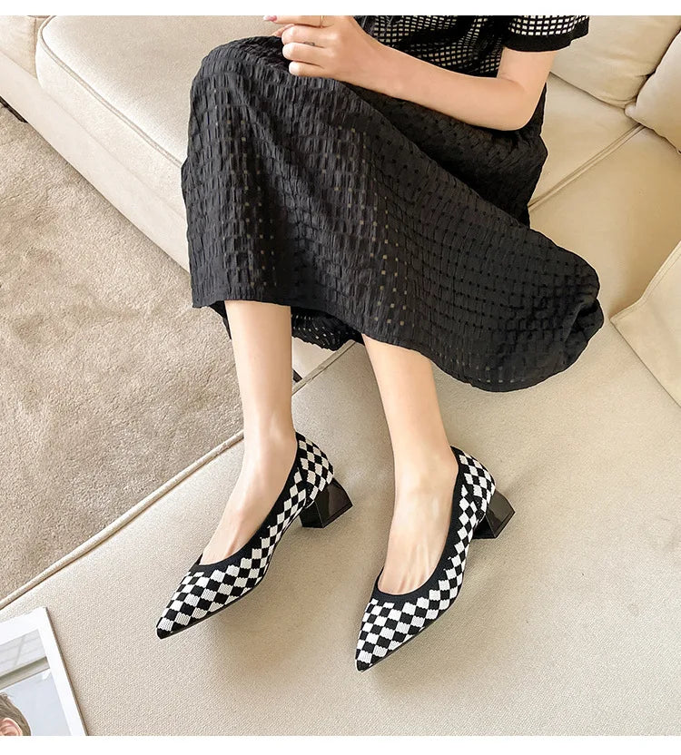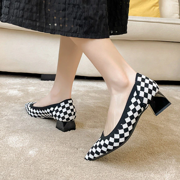 Scarpin Salto Bloco Confortável em Malha Tricô - Alcina