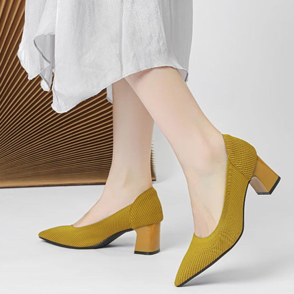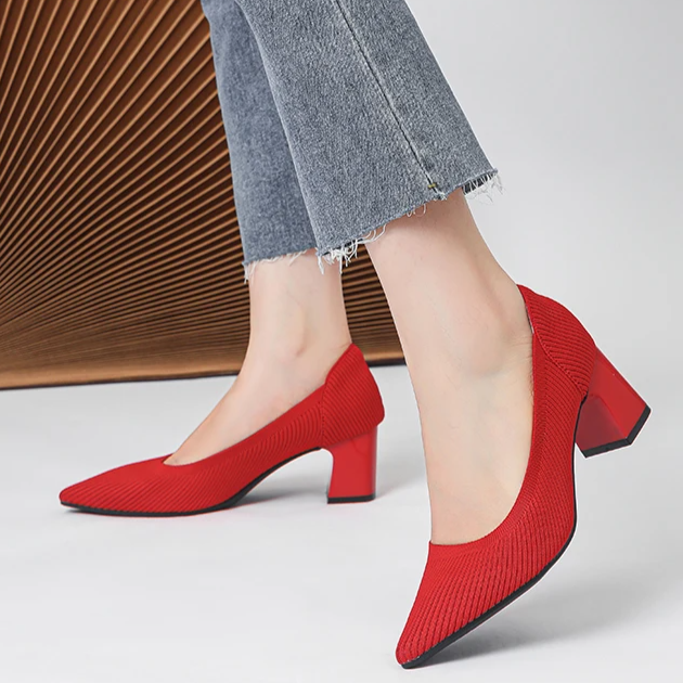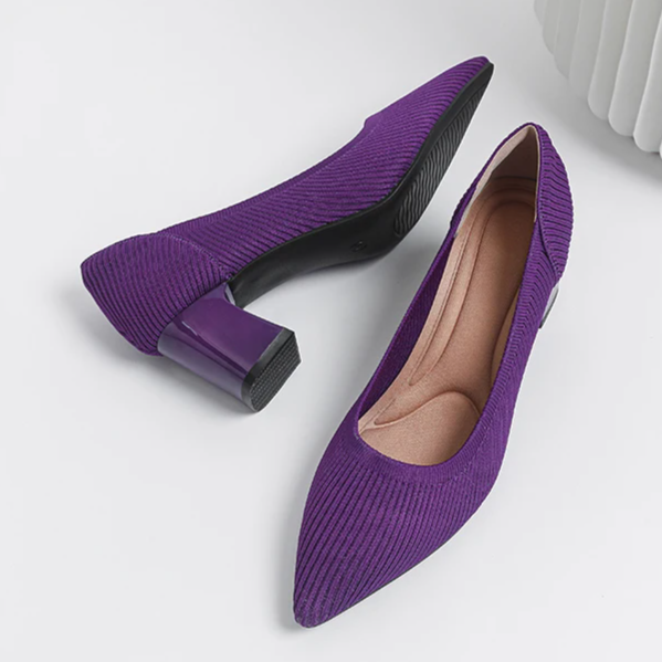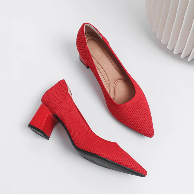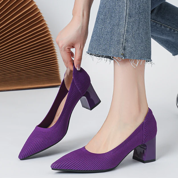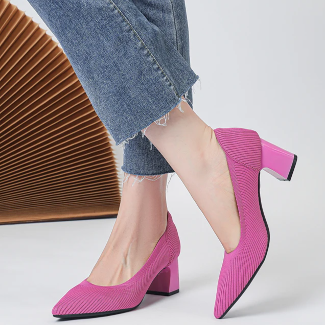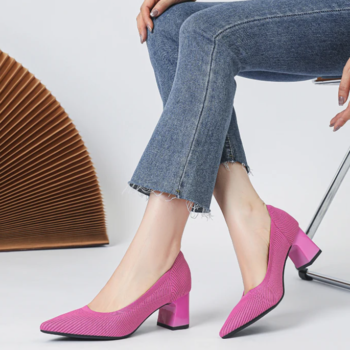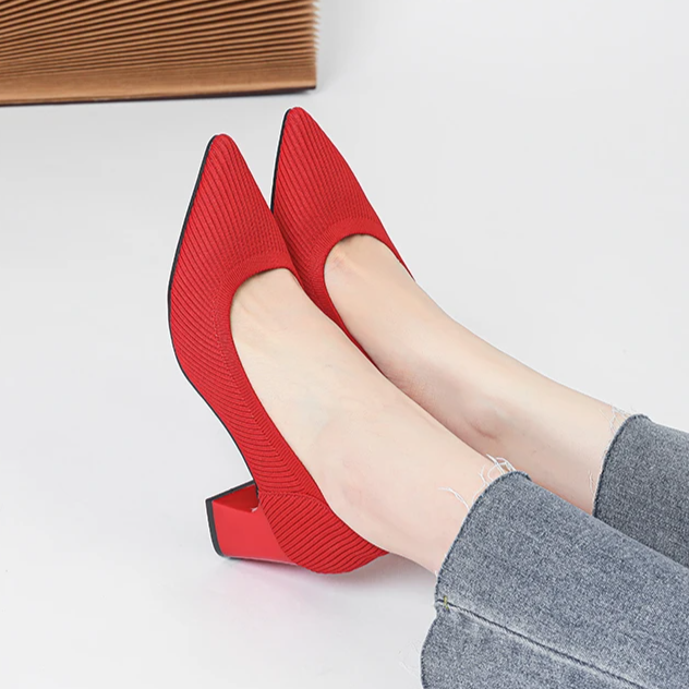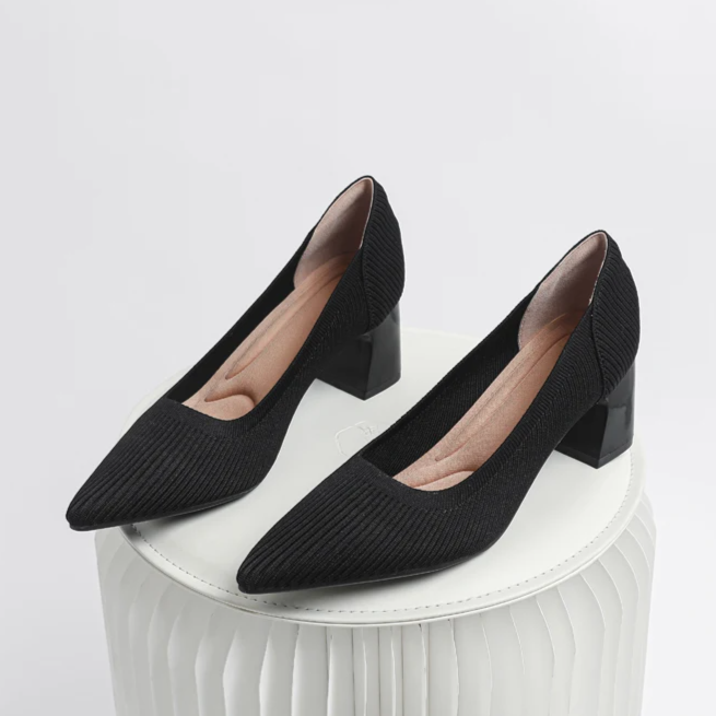Scarpin Salto Bloco Confortável em Malha Tricô - Alice