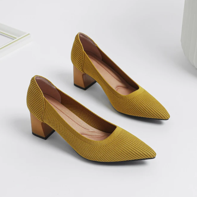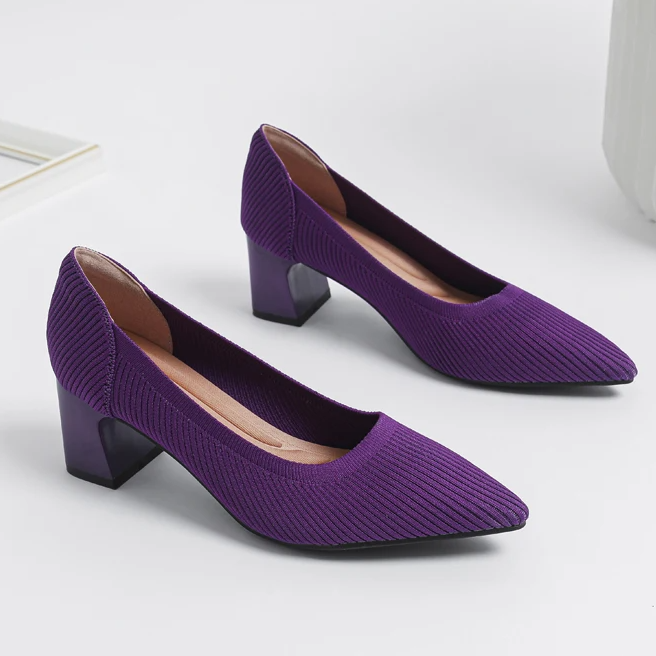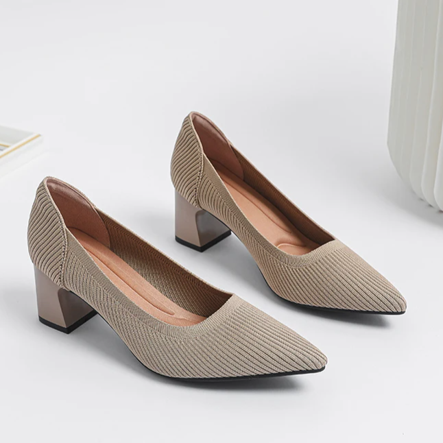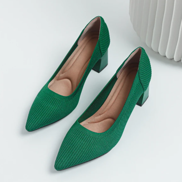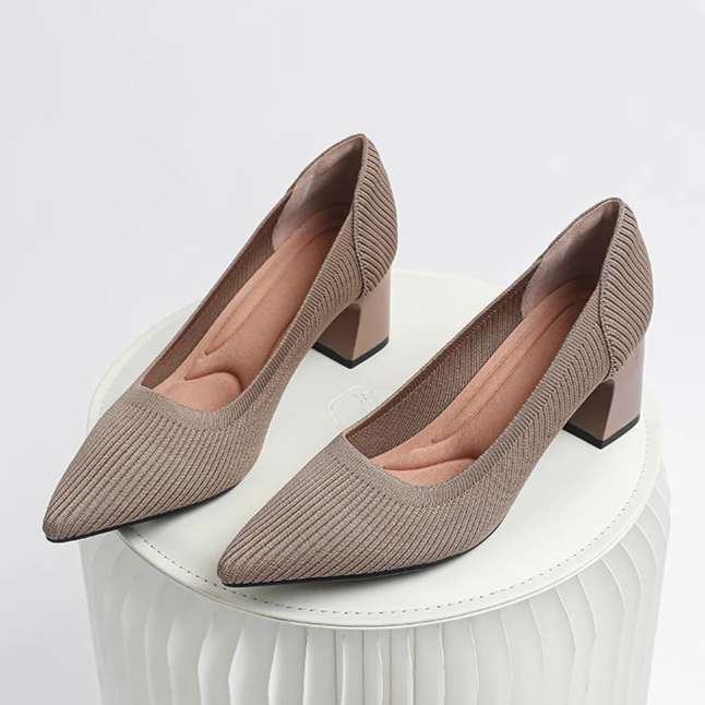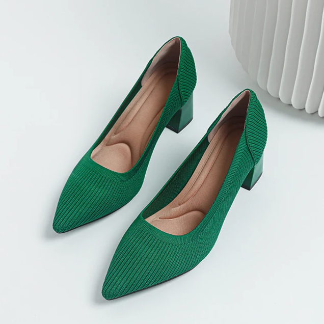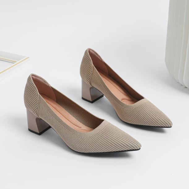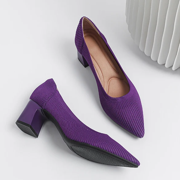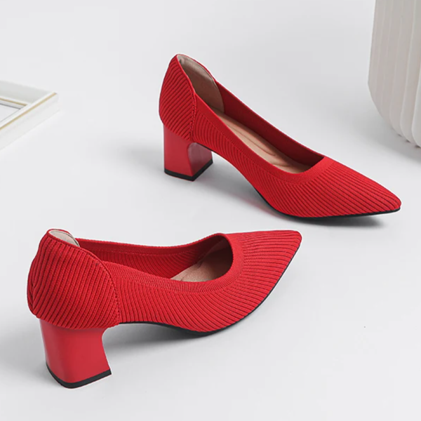 Scarpin Salto Bloco Confortável em Malha Tricô - Alice