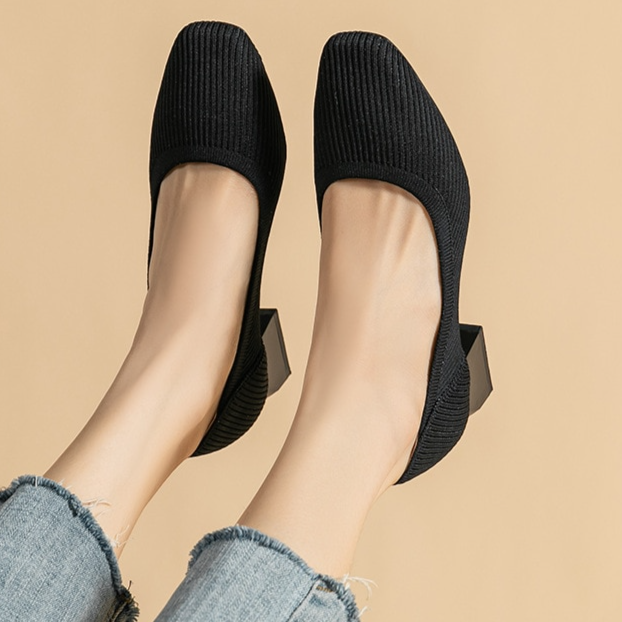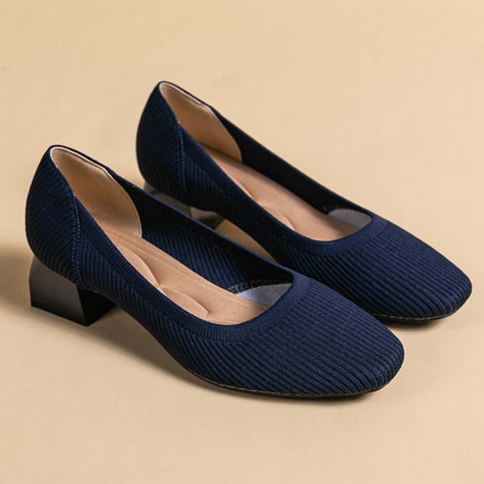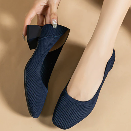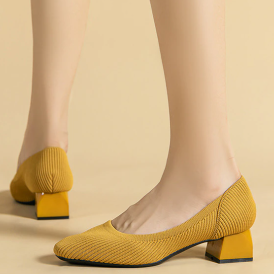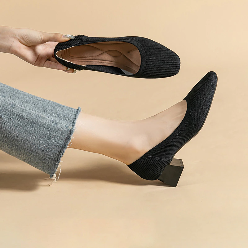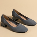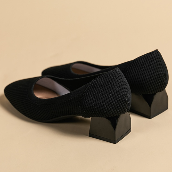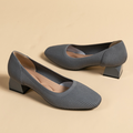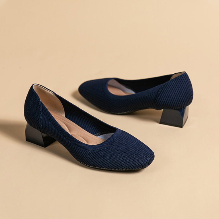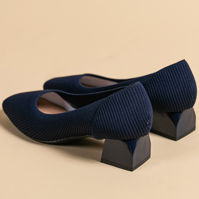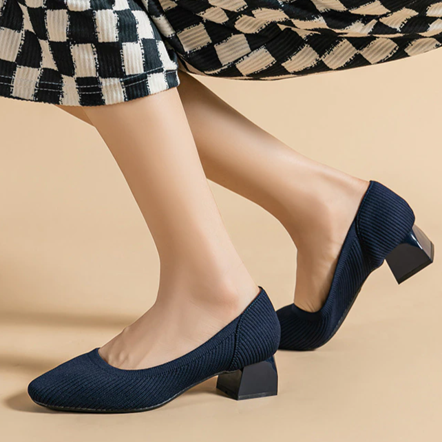 Scarpin Salto Bloco Confortável em Malha Tricô - Lena