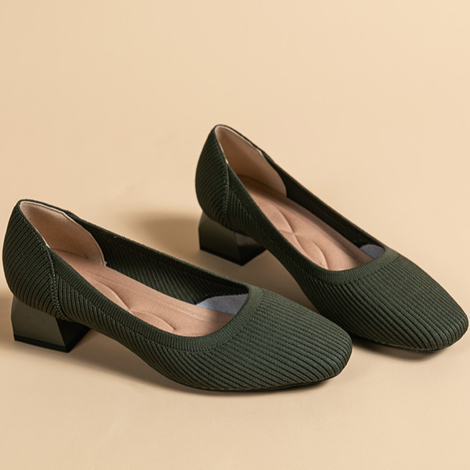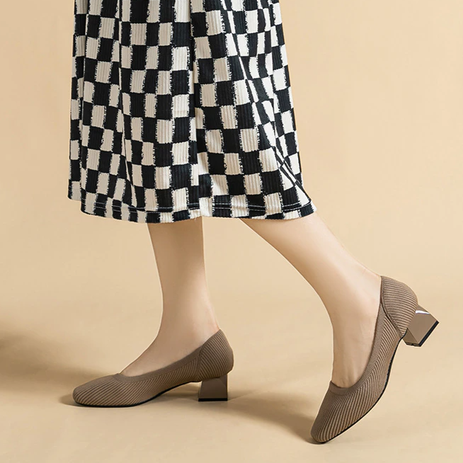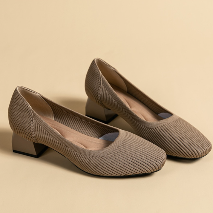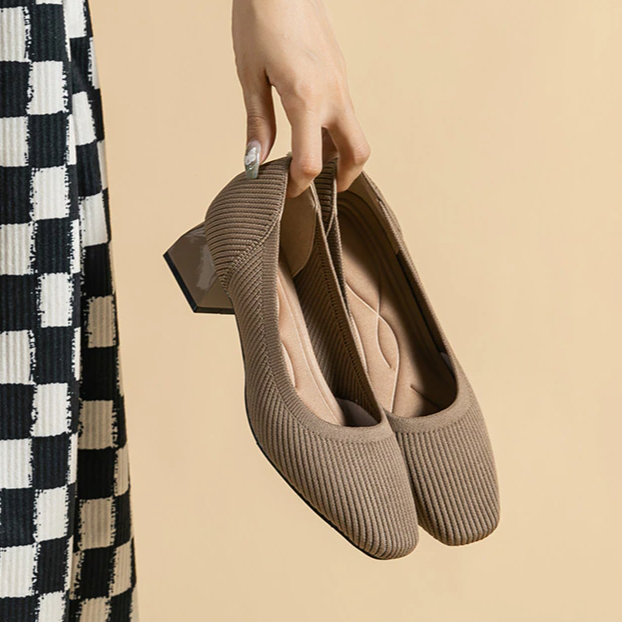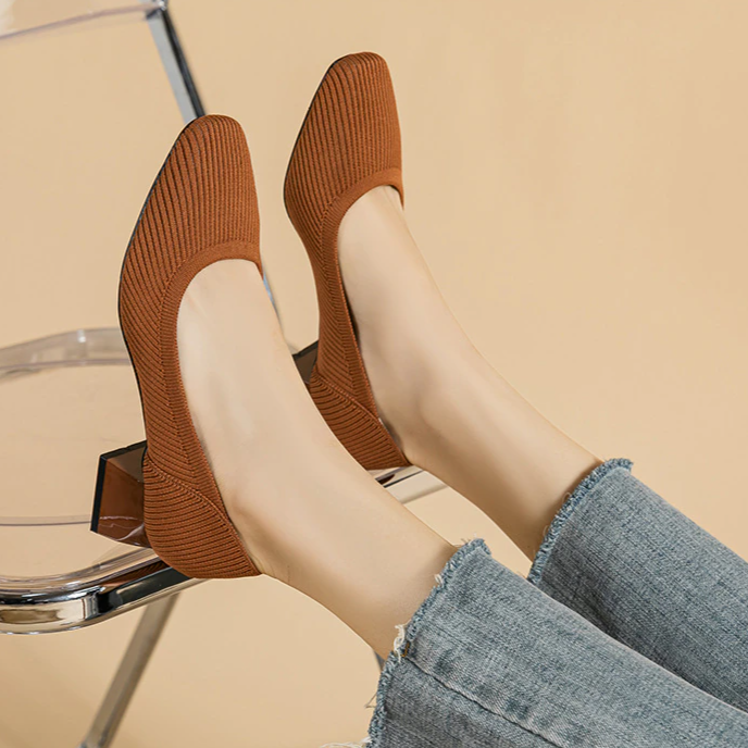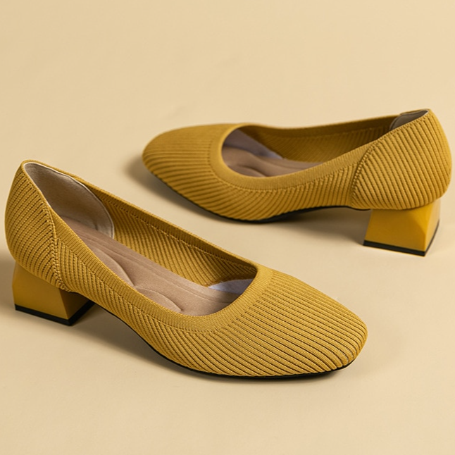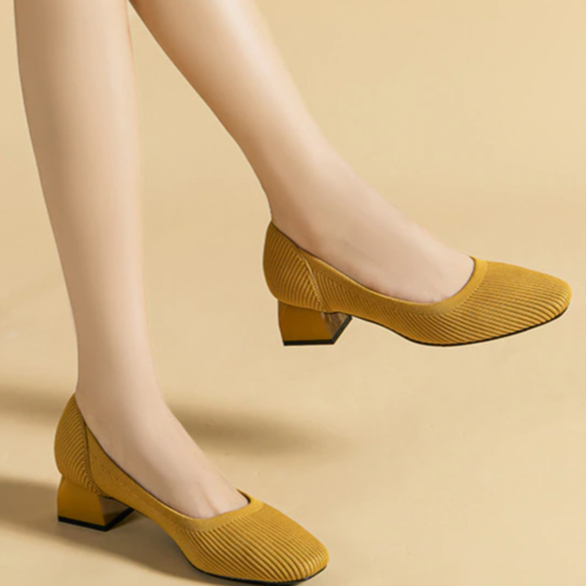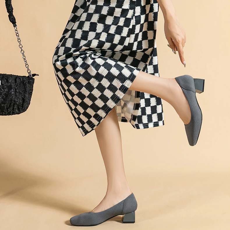 Scarpin Salto Bloco Confortável em Malha Tricô - Lena