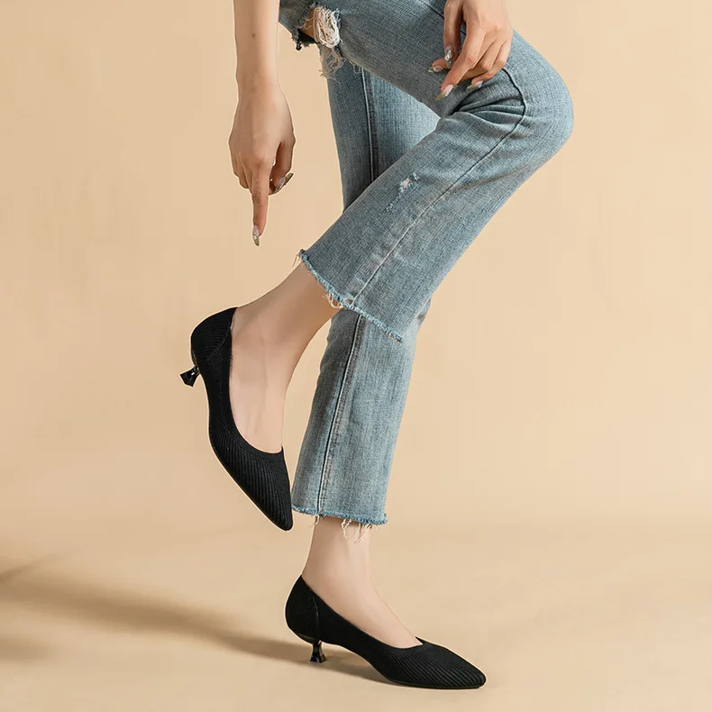 Scarpin Salto Kitten Confortável em Malha Tricô - Agnes